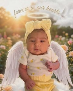 Though her time here was brief, Celeste left a lasting imprint on the hearts of all who knew and loved her. She was a beautiful baby girl with dark hair, and blue-gray eyes that had just begun to open to the world around her. She had already begun to smile, showing a spirited personality—often giving a cheeky glare or a playful side-eye that hinted at her feisty nature. From her very first day, she showed her strength, even holding her own pacifier.